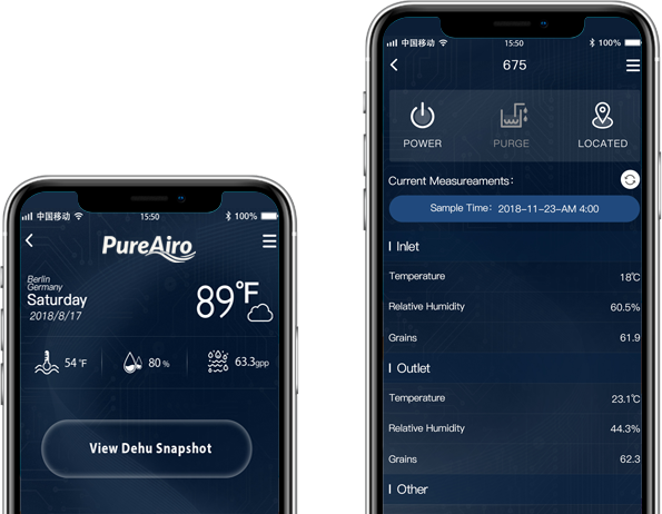 The PureAiro Dry Easy app allows users to quickly access calculations concerning their PureAiro products, including information like relative humidity, dew point, grains per pound, and dehumidifier performance.