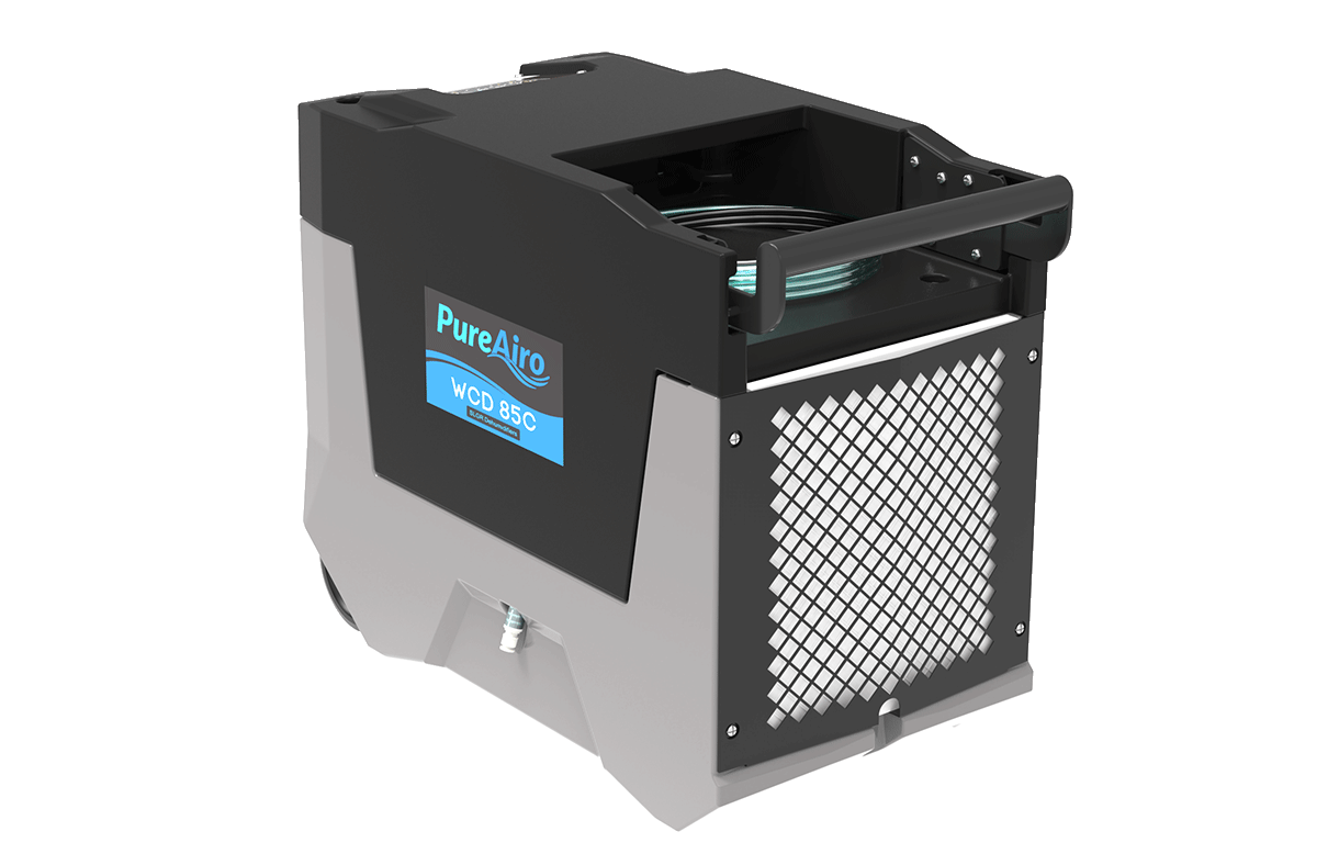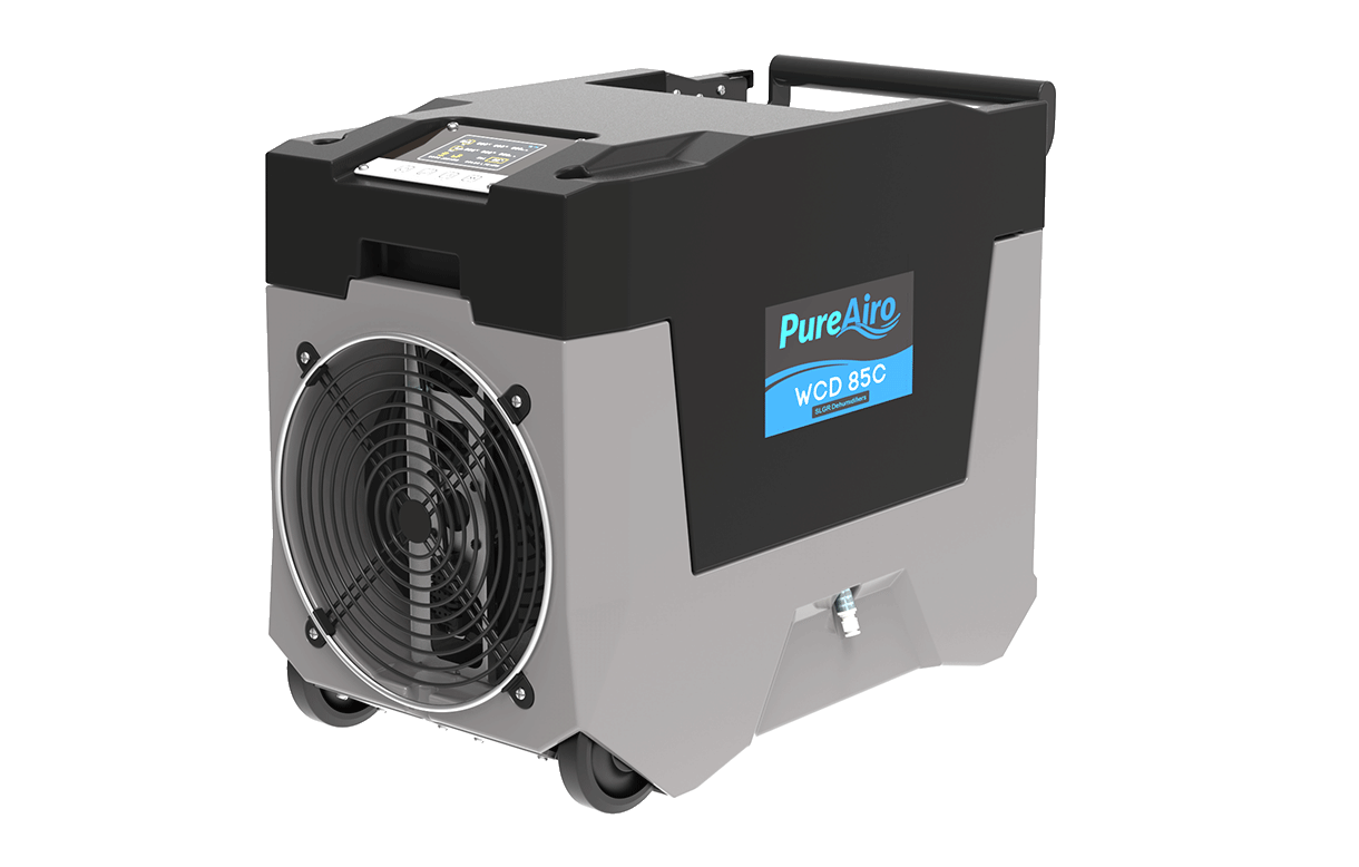The PureAiro WCD 85C has an excessively driving water removal capacity, making it the ideal solution for restoration needs. The machine features COP 3.0L/Kwh and installation flexibility that sets the unit apart in efficiency capabilities compared to conventional dehumidifiers on the market today. The PureAiro WCD 85C is the top-of-the-line choice for all urgent after-flood restoration tasks to remove and prevent mold growth early on. Its vast applications include plenty of notable locations, such as warehouses, shops, storage areas, industrial institutions, garage applications, etc.