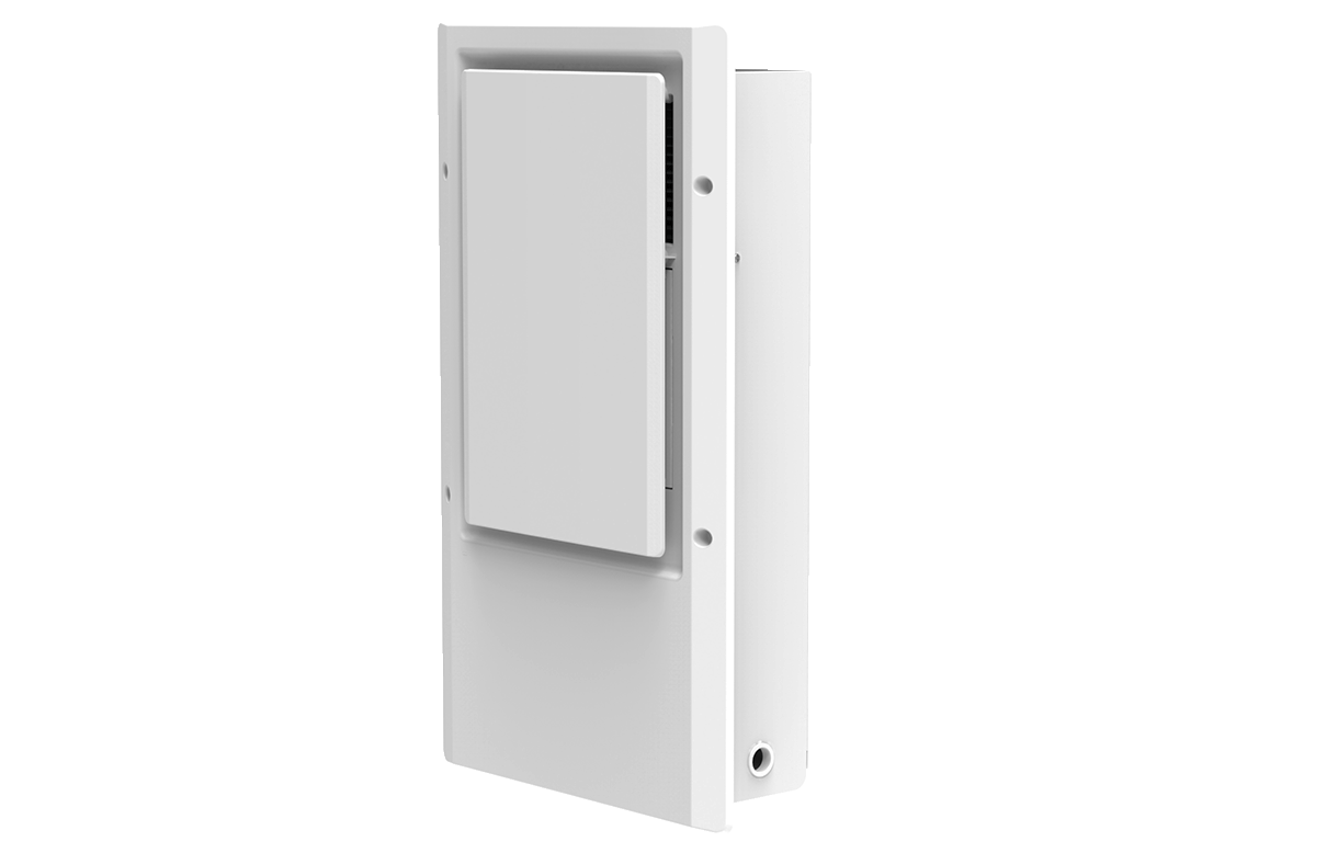 Controls are hidden behind tamper-proof front panel